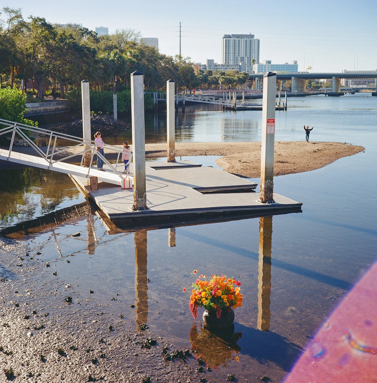 Marigolds are not afraid to be loud. They are resilient, they can grow all over the world. They don’t require a ton of water, they like warm temps, and they burn bright. I hoped the giant gold marigolds would make a bold statement against the blue-brown waters of the Hillsborough River, which haven’t looked the same since the pollution brought on by two hurricanes.