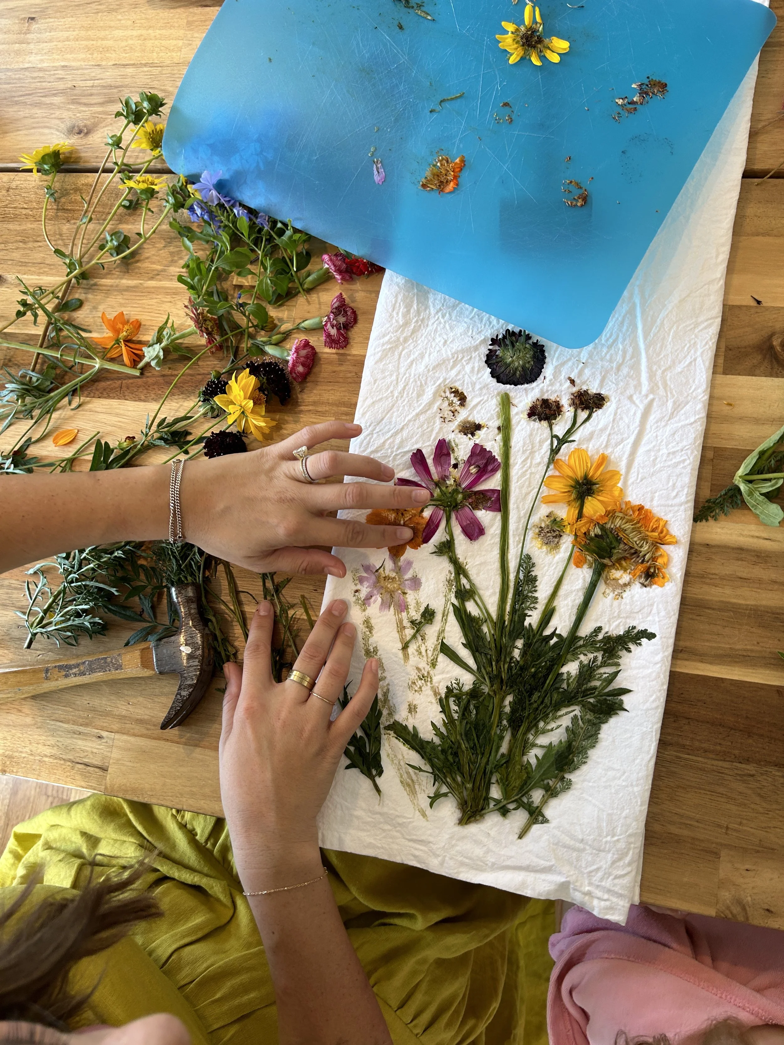 Flower pounding is a therapeutic eco printing method where we transfer botanical dyes through hammering. Each participant will create their own unique botanical print on a tea towel to take home. We’ll use locally grown, organic flowers and foliage from the garden of Blue House Florals. Please contact Blue House Florals at kali@bluehousefloralstampa.com with any accessibility needs. Suitable for ages 6 and up.
